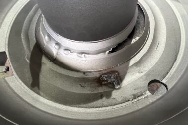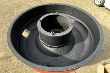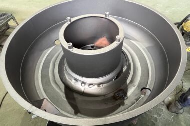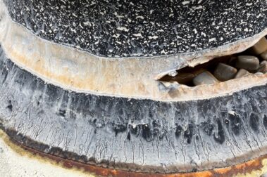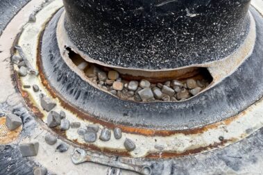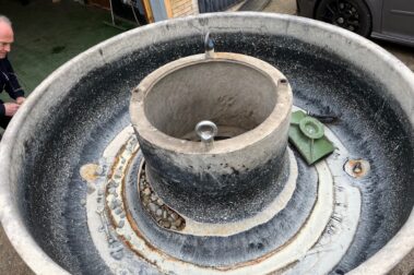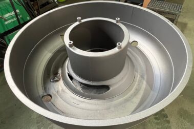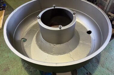 Esta vez tocó el turno a una cuba totalmente dañada por la abrasión una vez que se quedó sin recubrimiento. Se estuvo trabajando con la máquina hasta que se agujereó la chapa.