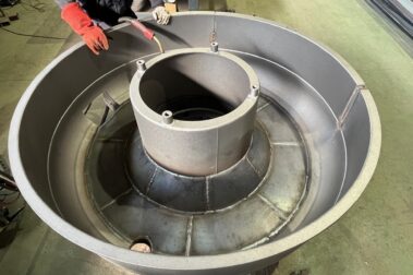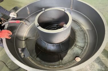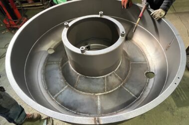 El primer paso fue eliminar los restos del antiguo recubrimiento, quemar y granallar la superficie para, una vez limpia, poder iniciar los trabajos de soldadura para después poder ir metiendo chapones y darle forma a la nueva estructura. Una vez puesto el nuevo suelo y pared, se estabilizó el material para que no cristalizara. Vuelta a granallar.