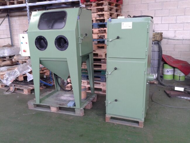 Cabina chorreadora de succión SU-93/80/80 en chapa blanca de 2mm. Cabina dimensiones exteriores: Largo: 930 mm Ancho: 800 mm Alto: 1700 mm Cabina Dimensiones Interiores: Largo: 930 mm. Ancho: 800 mm. Alto: 800 mm. Armario de aspiración. Largo: 700 mm. Ancho: 580 mm. Alto: 1340 mm. Peso neto del armario de aspiración es…