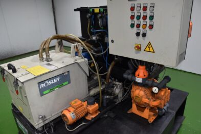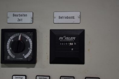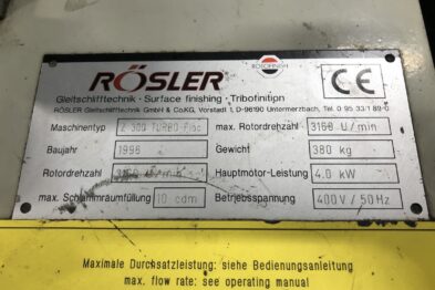 Centrifugadora de limpieza de lodos Rösler Z300 HA-Turbo Floc en muy buen estado. Carga máxima de 40kg y trabajo de 1000 litros por hora. Tanque de agua sucia de 250 litros.