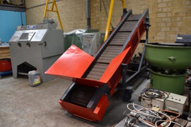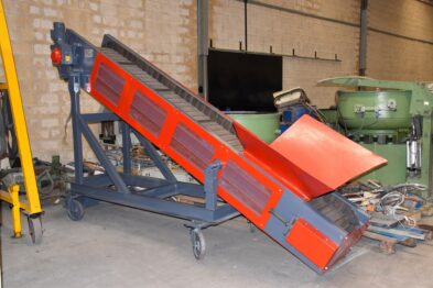 Cinta transportadora de acero especial para fundiciones. Cinta tipo oruga para mover piezas en caliente.