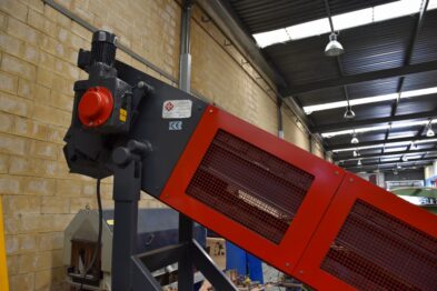 Altura de 2300mm, longitud de la cinta 3500 mm; ancho de la cinta 455mm; potencia 0,18 kW; velocidad de 1m/min. Peso 1400 kg