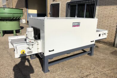 Secador de cinta para piezas de trabajo frágiles con hasta 45 kW de salida de calefacción, flujo de circulación de aire de hasta 6.000 m3 por hora y temperaturas hasta 150 ° C.