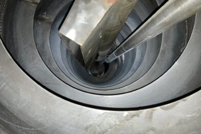 El proceso es de tipo continuo y se realiza por sucesivo atravesamiento del material que se debe tratar respectivamente en las zonas de tratamiento; el material se hace avanzar hasta el interior de la máquina mediante la rotación del transportador de rosca de Arquímedes. El avance del material en la máquina se puede ajustar con el fin de optimizar el proceso. La regulación se realiza regulando la velocidad de rotación de la rosca de Arquímedes. El material se puede tratar de forma continua o en lotes.