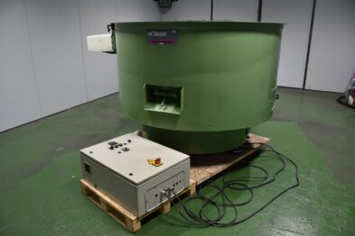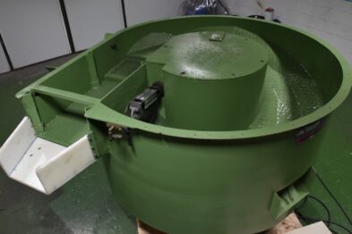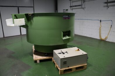 Secadora circular Rösler RT850 Euro-So para secado de componentes después del proceso de acabado vibratorio o después de cualquier proceso húmedo. Las piezas a secar se introducen en la secadora, la cual se calienta a través de unas resistencias de serpentín que calientan el maizorb y éstas, a su vez, las piezas.