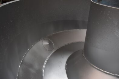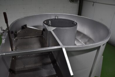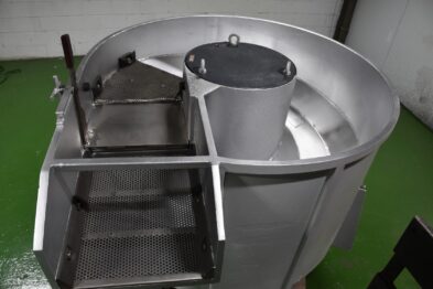 Secadora circular de maizorb Tecnofinish de gran capacidad con descarga semiautomática mediante sistema de palanca.