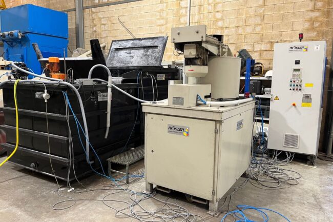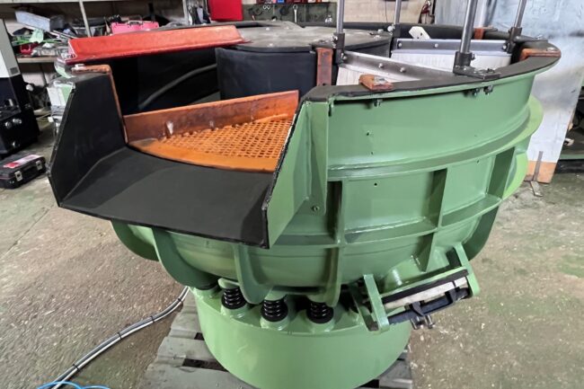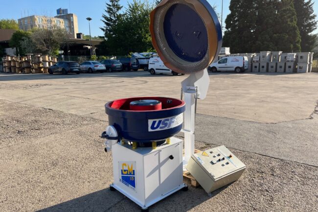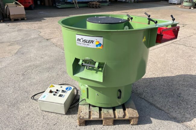 Vibrador circular para el pulido de piezas a fondo plano Walther Trowal CM 115. Recubrimiento en poliuretano en perfecto estado. Como nuevo. Capacidad bruta: 110 litros Dimensiones: 900 mm diámetro exterior; 230 mm ancho de canal; 1010 mm altura. Velocidad de motor: 1000 rpm / 1500 rpm Potencia: 1 kW Alimentación trifásica 400V 50Hz Tapa…